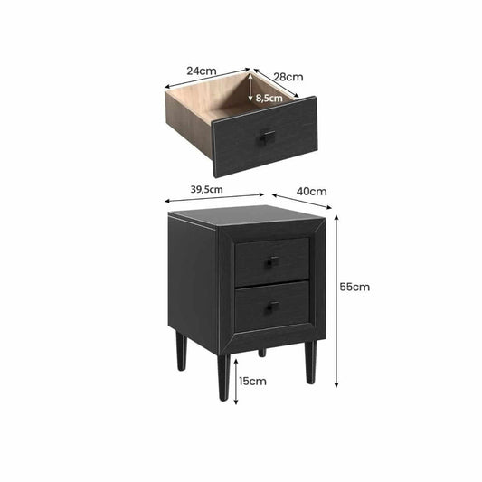 2 Naktinių Staliukų Su 2 Stalčiais Rinkinys, Juodas 40 x 39,5 x 55 cm
