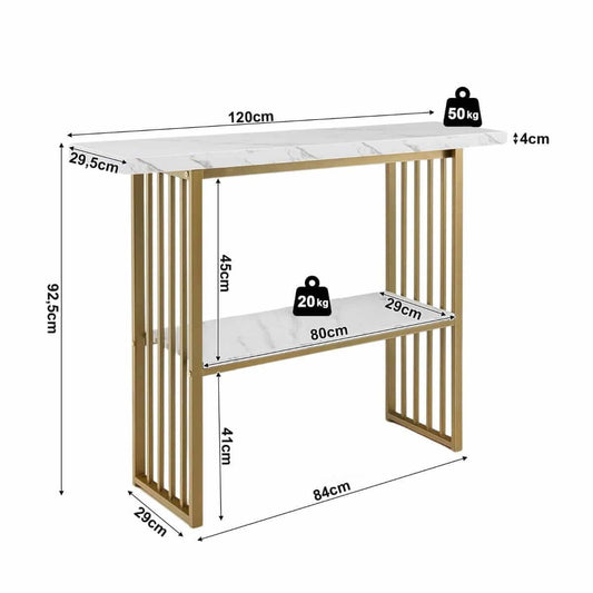 Konsolė Su Marmuro Imitacijos Viršumi 120 cm Aukso Spalvos