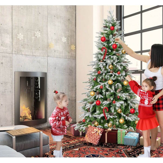 Dirbtinė Kalėdinė Eglutė 190 cm Su LED Lemputėmis, Snieguotos Šakos, Kankorėžiai