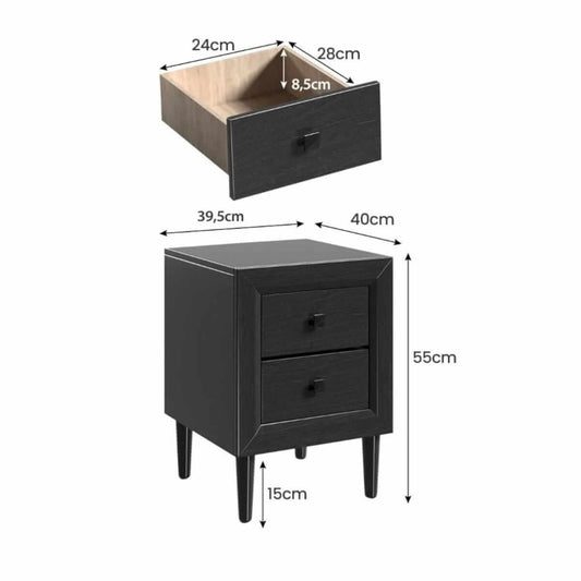 Medinis Naktinis Staliukas Su 2 Stalčiais Juodas 45 x 39,5 x 62 cm
