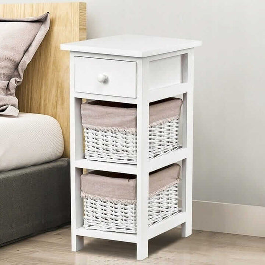 Naktinis Staliukas Su 2-iem Krepšeliais Baltos Spalvos 28 x 26 x 59,5 cm