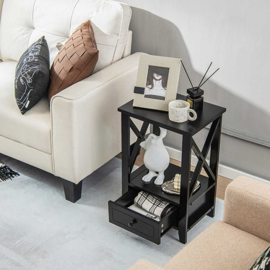 Naktinis Staliukas Su Stalčiumi Ir Lentyna Juodas 40x30x61,5 cm