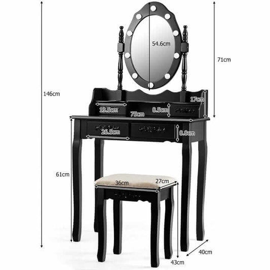 Kosmetikos Staliukas Su LED Veidrodžiu Ir Kėdute Juodas 75 x 40 x 146 cm