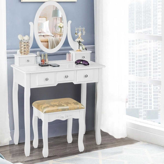 Elegantiškas Kosmetinis Staliukas Su Veidrodžiu Ir Minkšta Kėdute 50 x 30 x 136 cm