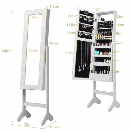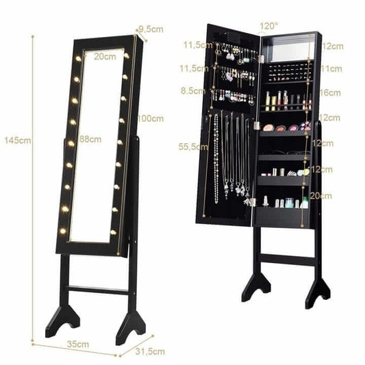 Papuošalų Spintelė Su Veidrodžiu Ir LED Apšvietimu 145 × 35 × 31,5 cm