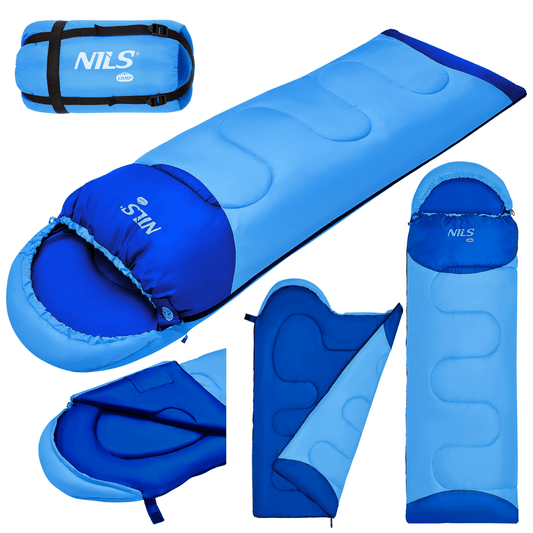 NILS CAMP NC2007 Junior šiltas vaikiškas miegmaišis su gobtuvu, 4 Spalvos