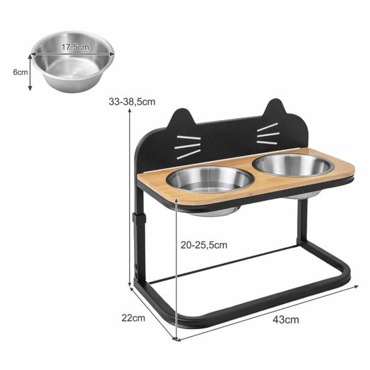 Paaukštintas Maisto Dubenėlis Gyvūnams Ant Reguliuojamo Stovo, Katinas