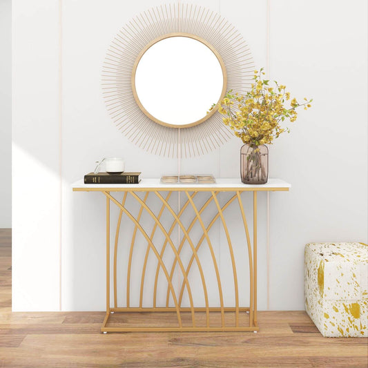 Elegantiška Ir Prabangi Konsolė Su Marmuro Ir Aukso Imitacija 120 cm