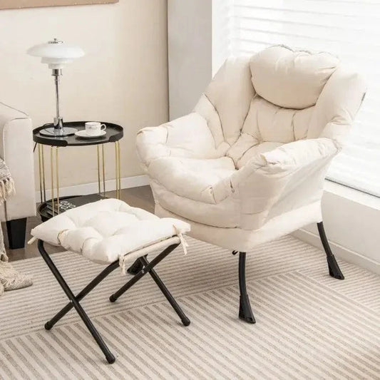 Ergonomiškas Minkštas Fotelis Su Kojų Atrama, Smėlio Spalva