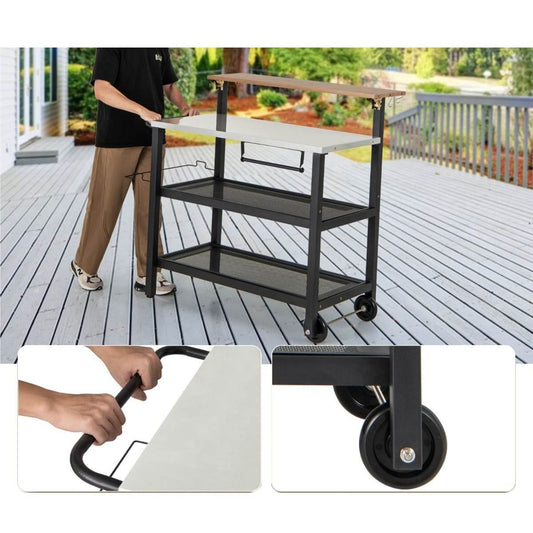 Grilio Vežimėlis Su Sulankstomu Viršumi Ir Sandėliavimo Lentynomis