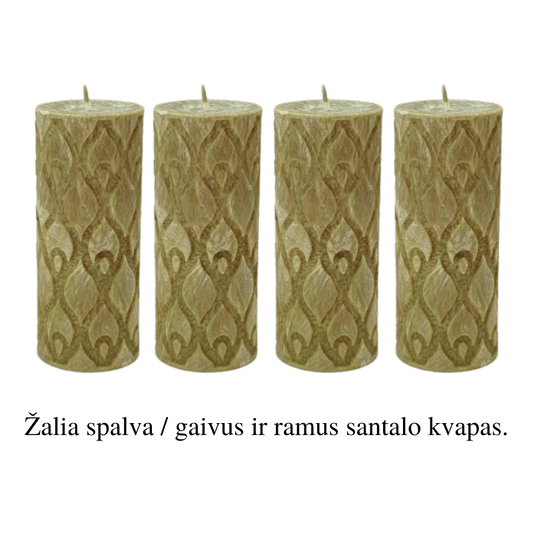 Kvepiančių Žvakių Rinkinys 4vnt. Žalia Spalva, Gaivus Ir Ramus Santalo Kvapas