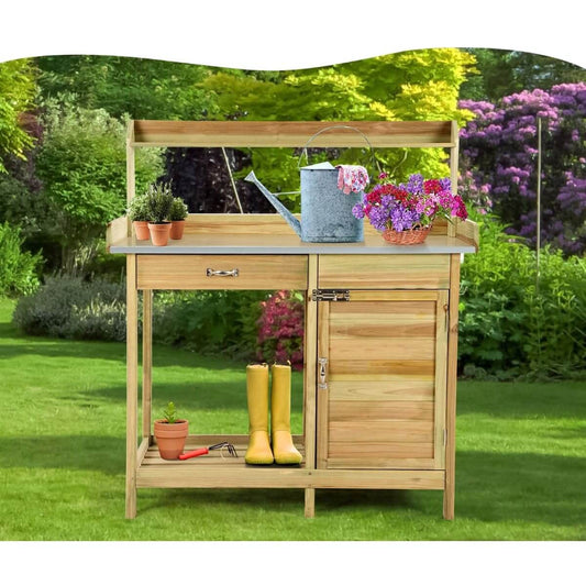 Medinis Sodo Darbastalis Stalas Su Stalviršiu Ir Spintelėmis Daržininkams