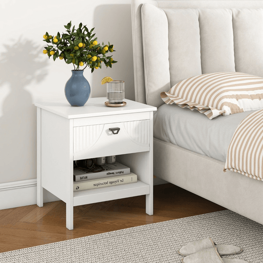 Modernus Baltas Naktinis Staliukas Su Stalčiumi Ir Lentyna