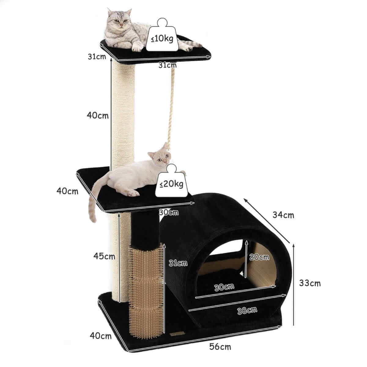 Ideali dovana jūsų augintiniui - tinkamas draskymo stovas. Jūsų katė gali atsipalaiduoti ir žaisti su dviem platformomis ir patogia dėže. Tvirta medžio drožlių plokštės konstrukcija užtikrina optimalų stabilumą. Minkštu plastikiniu šepetėliu jūsų augintinis gali masažuoti ir šukuotis, taip pat draskyti sizaliu apvyniotą postą, kad išsaugotų jūsų baldus. Suteikite savo katinui šiek tiek prabangos!