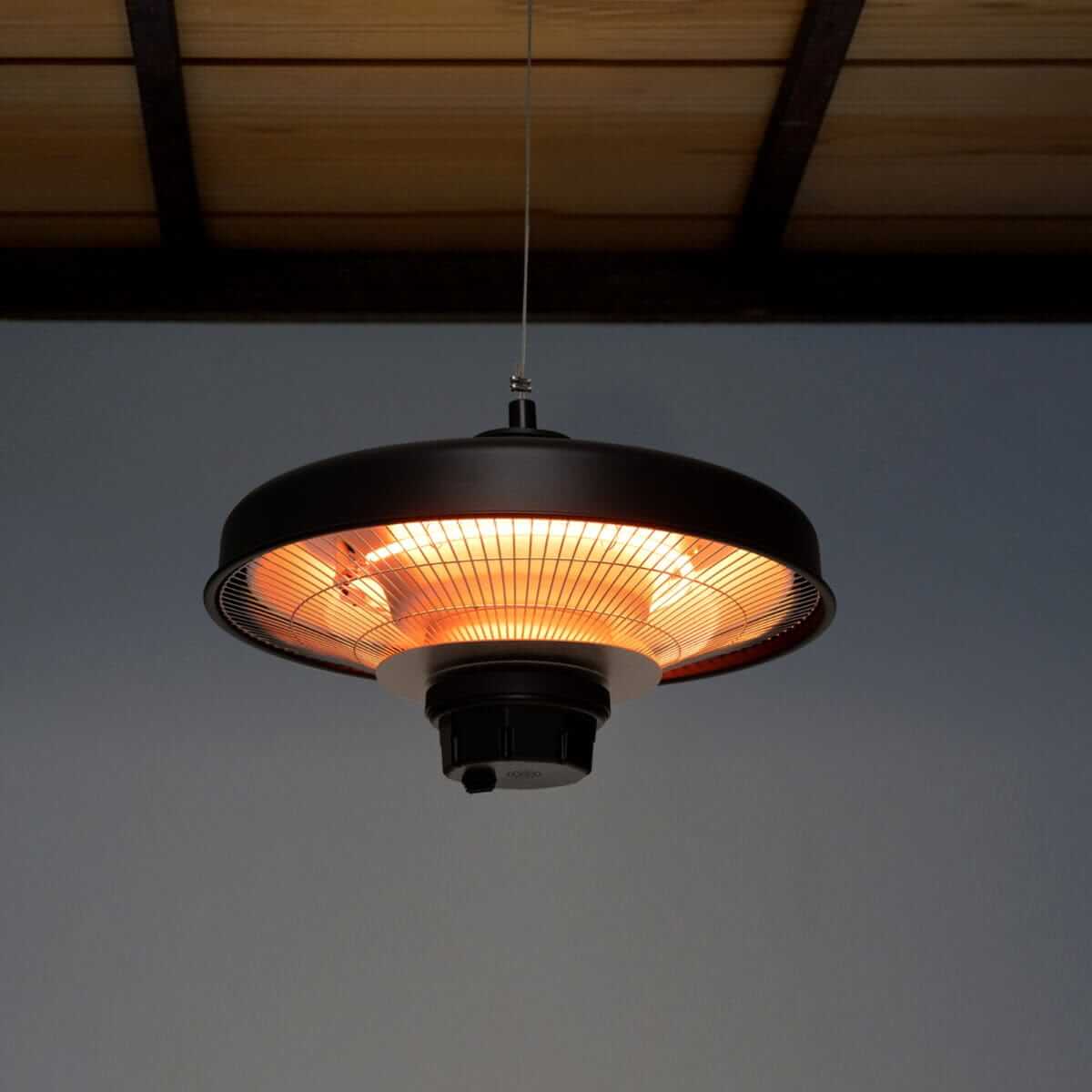 Reguliuojamas aukštis: Šildytuvo pakabos aukštį galima lengvai reguliuoti pagal lubų aukštį dėl 0,7-1,2 m ilgio laido reguliavimo galimybės. Tai leidžia išlaikyti saugų atstumą nuo žemės, žmonių ir baldų.