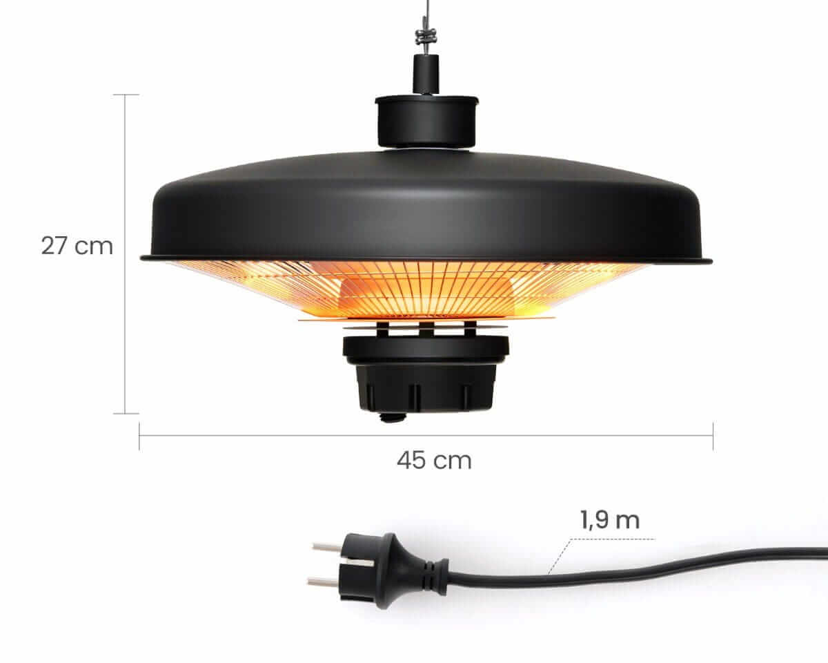 Mūsų 2000 W galios šildytuvas, kuriame naudojama efektyvi infraraudonųjų spindulių technologija, pavers jūsų verandą, pavėsinę ar kiemelį maloniu prieglobsčiu. Pakuotėje yra visa reikalinga montavimo įranga. Nuotolinio valdymo pultelis leis jums visiškai valdyti įrangą neatsitraukiant nuo kėdės. Šildytuvas yra visiškai atsparus vandeniui, todėl jį visiškai saugu naudoti lauke. Taip pat nėra jokios perkaitimo ar sugadinimo rizikos, nes saugiklis išjungs įrenginį, jei jis taps per karštas. Reguliuojamas laidas leidžia pakabinti šildytuvą tinkamame aukštyje. Įsigykite jį dabar ir mėgaukitės lauko susibūrimais šaltomis dienomis.