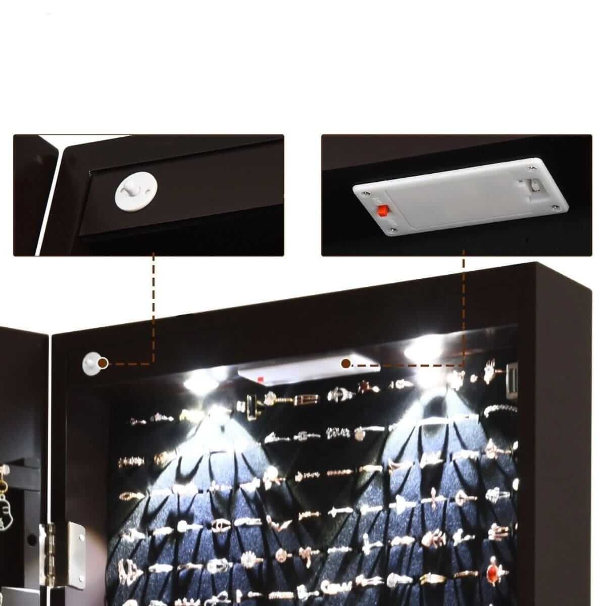 Automatic lighting activation - when the cabinet is opened, the automatic LED lighting function makes it even easier to find the necessary jewelry.