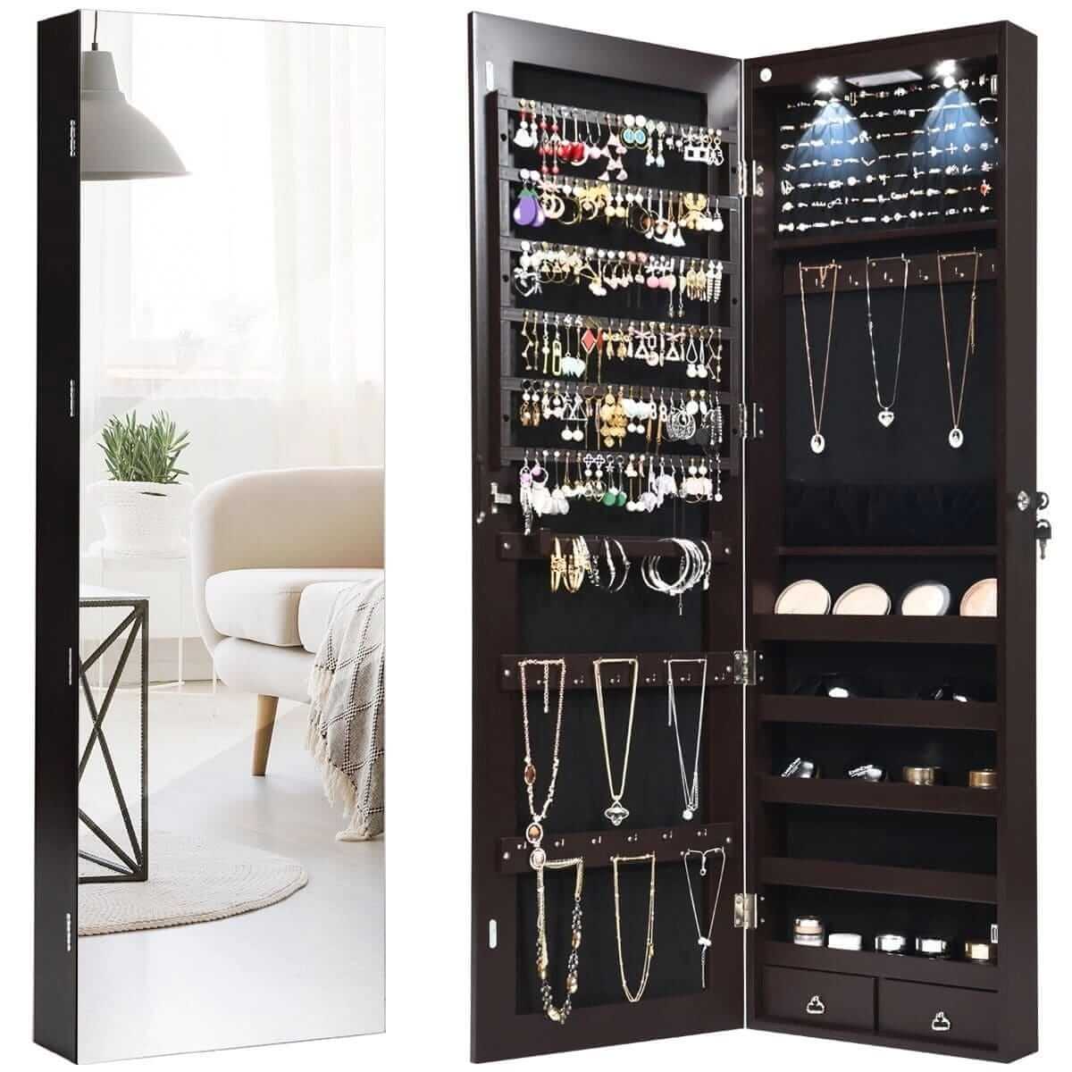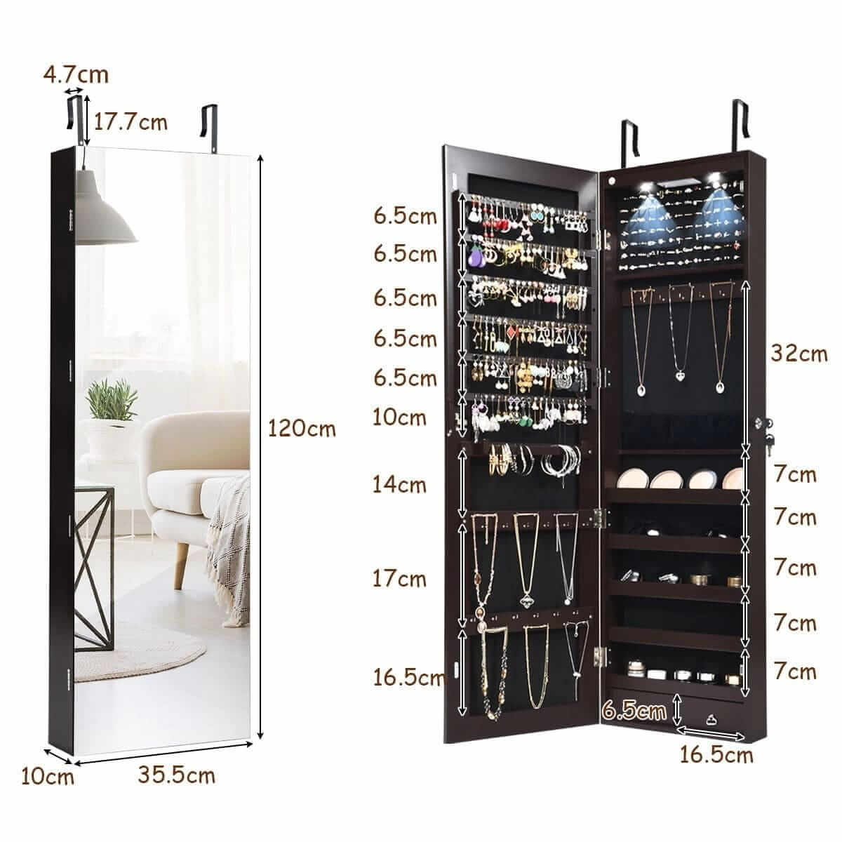 Jewelry And Accessories Cabinet With Lighting And Mirror 138 × 35.6 × 10 cm