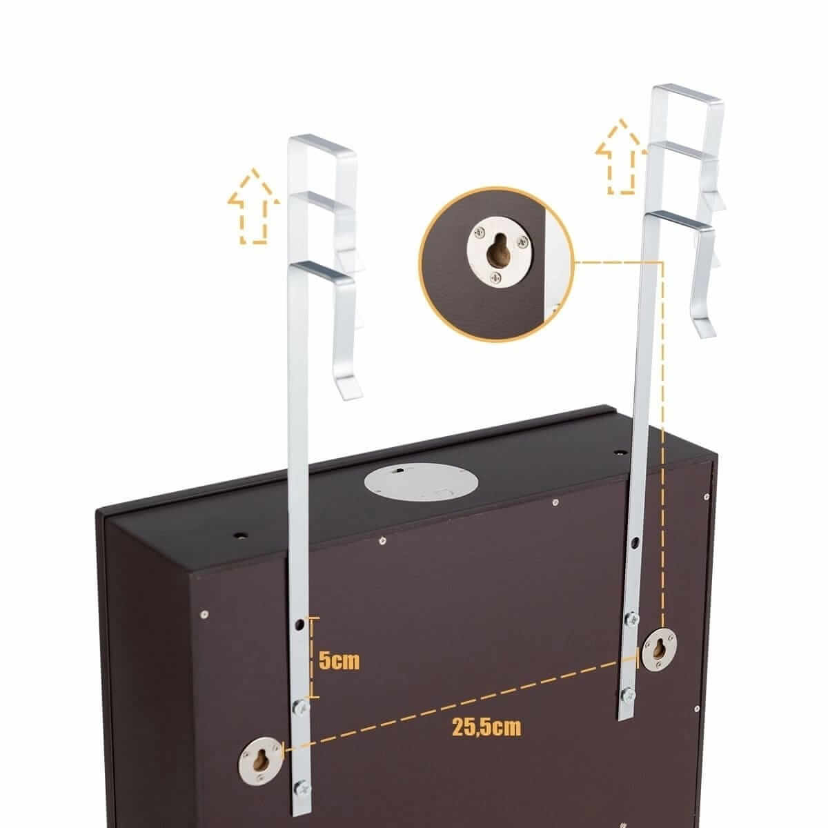 Mounting hooks - there are two hooks on the cabinet for hanging it on the door or wall. They are safe to use on different types of doors and will not damage them.