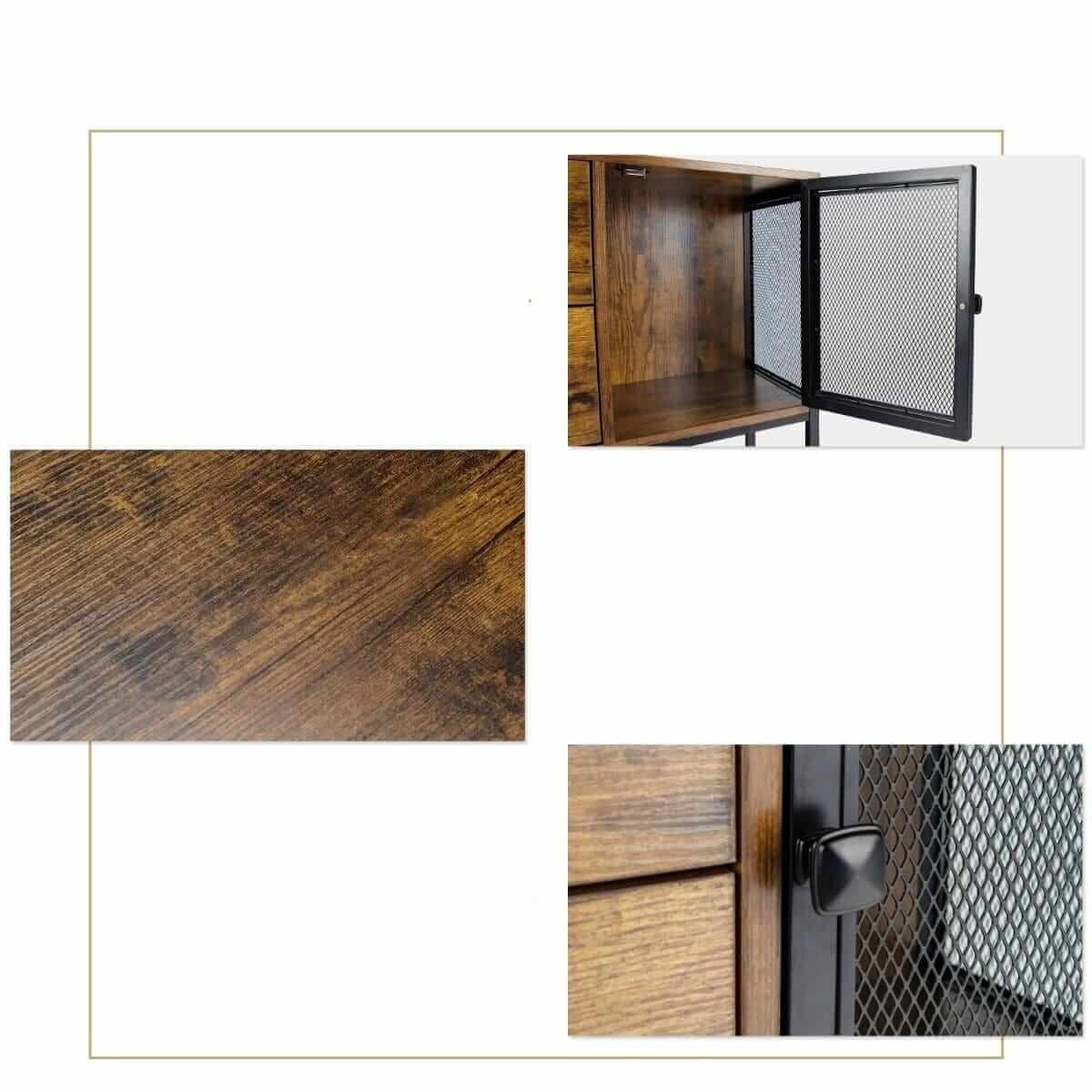 Industrial style design: Rustic wood color and black steel frame add character to the wardrobe. Its color perfectly matches the design of rooms of various styles. The chic look is enhanced by the lattice doors and aesthetic handles.