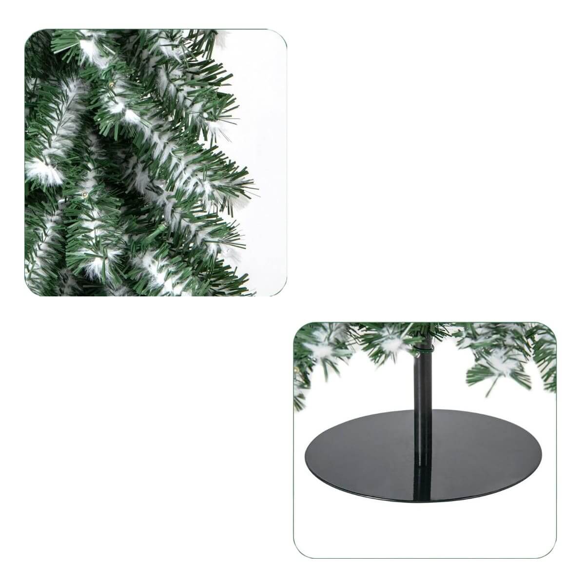 Šios Kalėdų eglutės yra pagamintos iš ugniai atsparaus ir bekvapio PVC, todėl yra saugios naudoti patalpose. Tvirtas metalinis pagrindas užtikrina stabilumą ir apsaugo eglutę nuo apvirtimo, kad šventės praeitų be rūpesčių.