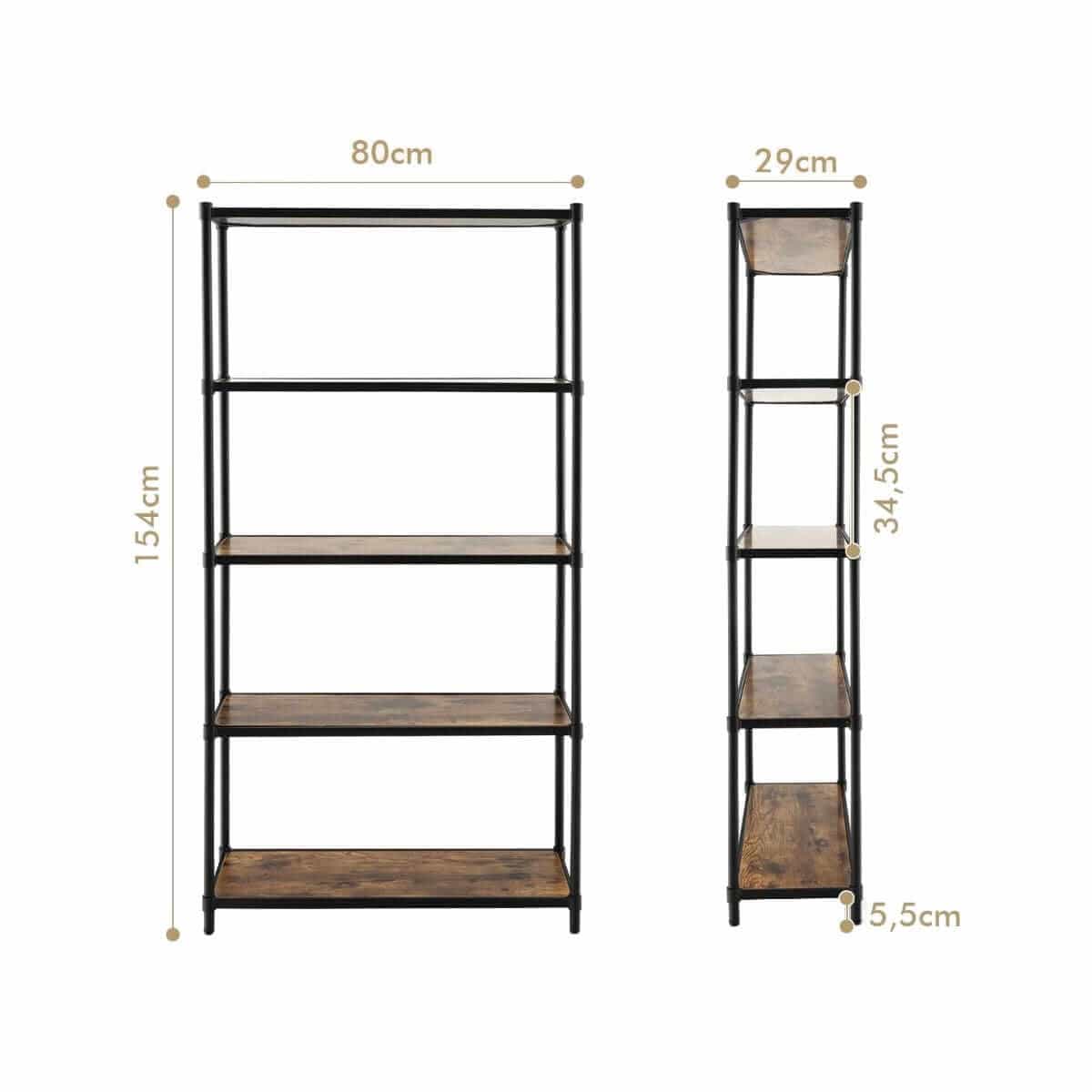 5-Level Industrial Bookcase 80 x 29 x 154cm