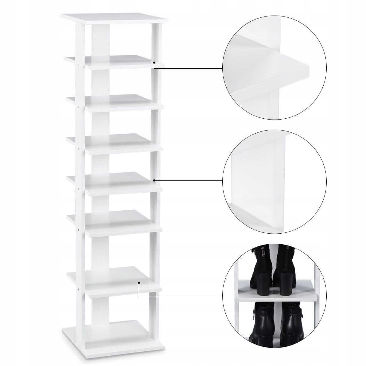 - Daug vietos - 7 atviros įvairaus aukščio lentynos (2 lentynos po 19 cm ir 5 lentynos po 13 cm) suteikia daug vietos batams, šalikams, skrybėlėms ir aksesuarams laikyti.