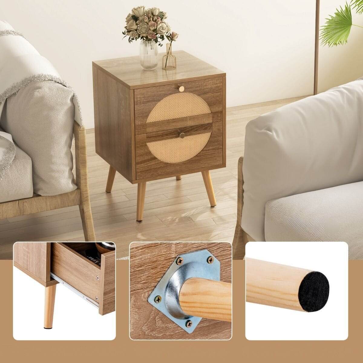 Boho Stiliaus Naktiniai Staliukai su Rotango Akcentais ir Sandėliavimo Stalčiais – Stilingas Ir Praktiškas Sprendimas Jūsų Namams