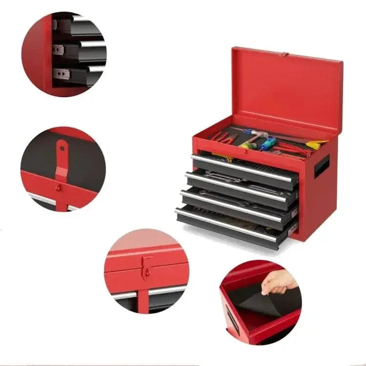 - Viršutinė dalis – ištraukiami stalčiai, tinkami smulkiems įrankiams ir priedams.