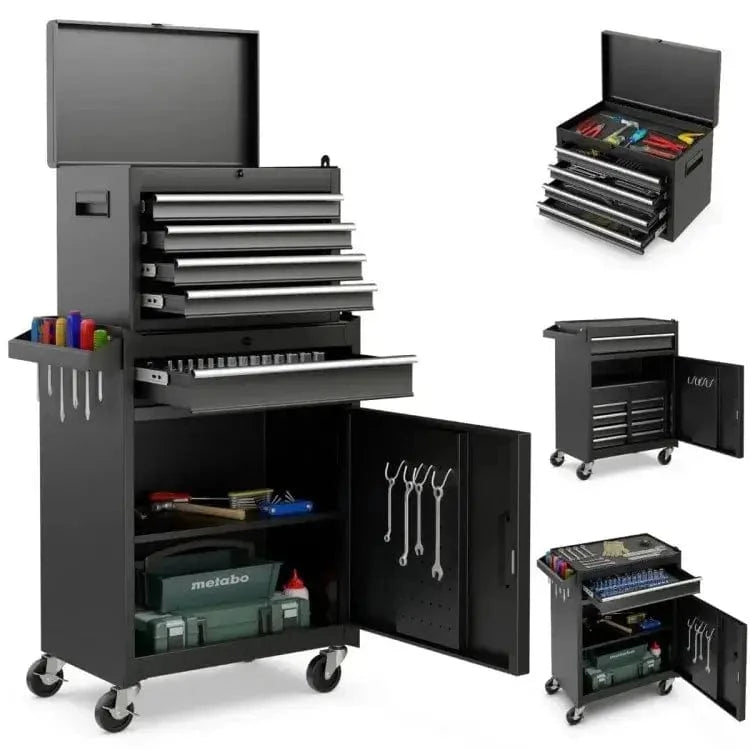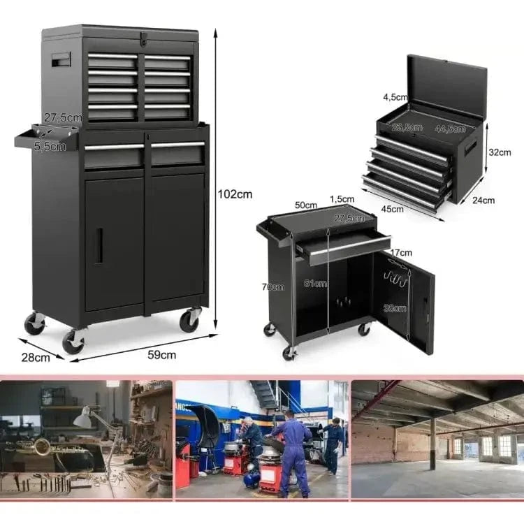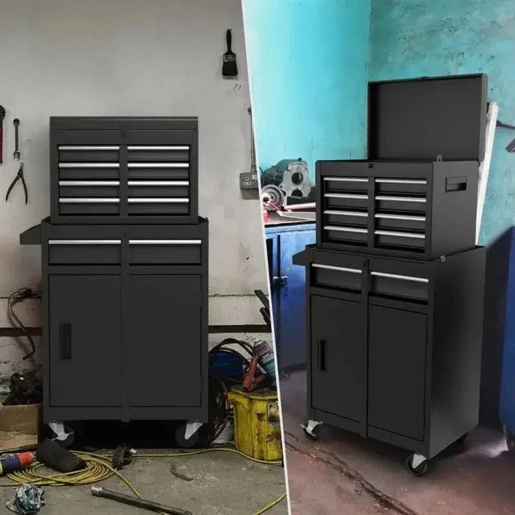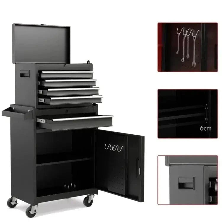 Daugiafunkcinė Įrankių Spinta Su Stalčiais Ir Ratukais Dirbtuvėms Juoda
