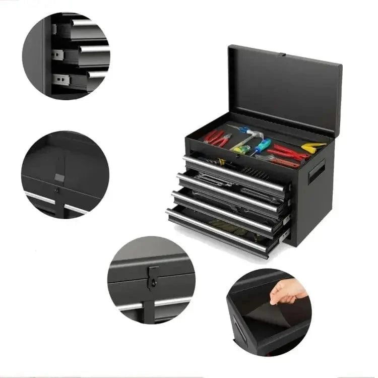- Viršutinė dalis – ištraukiami stalčiai, tinkami smulkiems įrankiams ir priedams.
