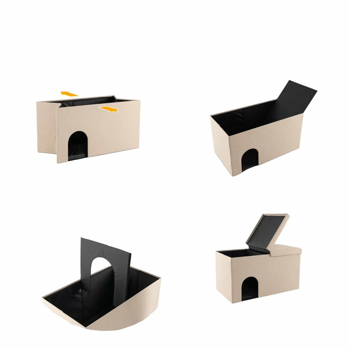 Susipažinkite su mūsų daugiafunkciniais kačių baldais, kurie gali būti vieta kraiko dėžutei, pasitarnauti kaip pufas ar būti vieta susidėti daiktus jūsų keturkojui. Kačių kraiko dėžutėje yra anglies filtras, kuris kontroliuoja nemalonius kvapus, todėl jūsų namai visada išliks gaivaus kvapo. Atverčiamas dangtis leidžia lengvai ir be rūpesčių įdėti ir išimti. Dvi sluoksnis kilimėlis, korio struktūra neleidžia kraikui išvirsti ant grindų. Neperšlampamas interjeras suteikia gyvūnams švarią ir sausą erdvę. Neslystantis pagrindas padeda kraiko kilimėliui išlikti vietoje ir sumažina netvarką, kai ant jo vaikšto katės. Baldai yra su nuimama pertvara, kurią galite sulankstyti ir sukurti daugiau erdvės.