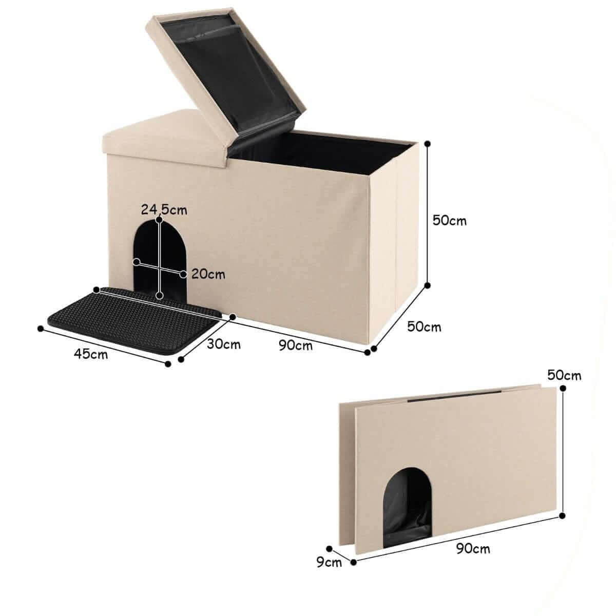 Daugiafunkcis Baldas Suoliukas, Pufas ar Vieta Kačių Kraikui Laikyti 90 × 50 × 50 cm