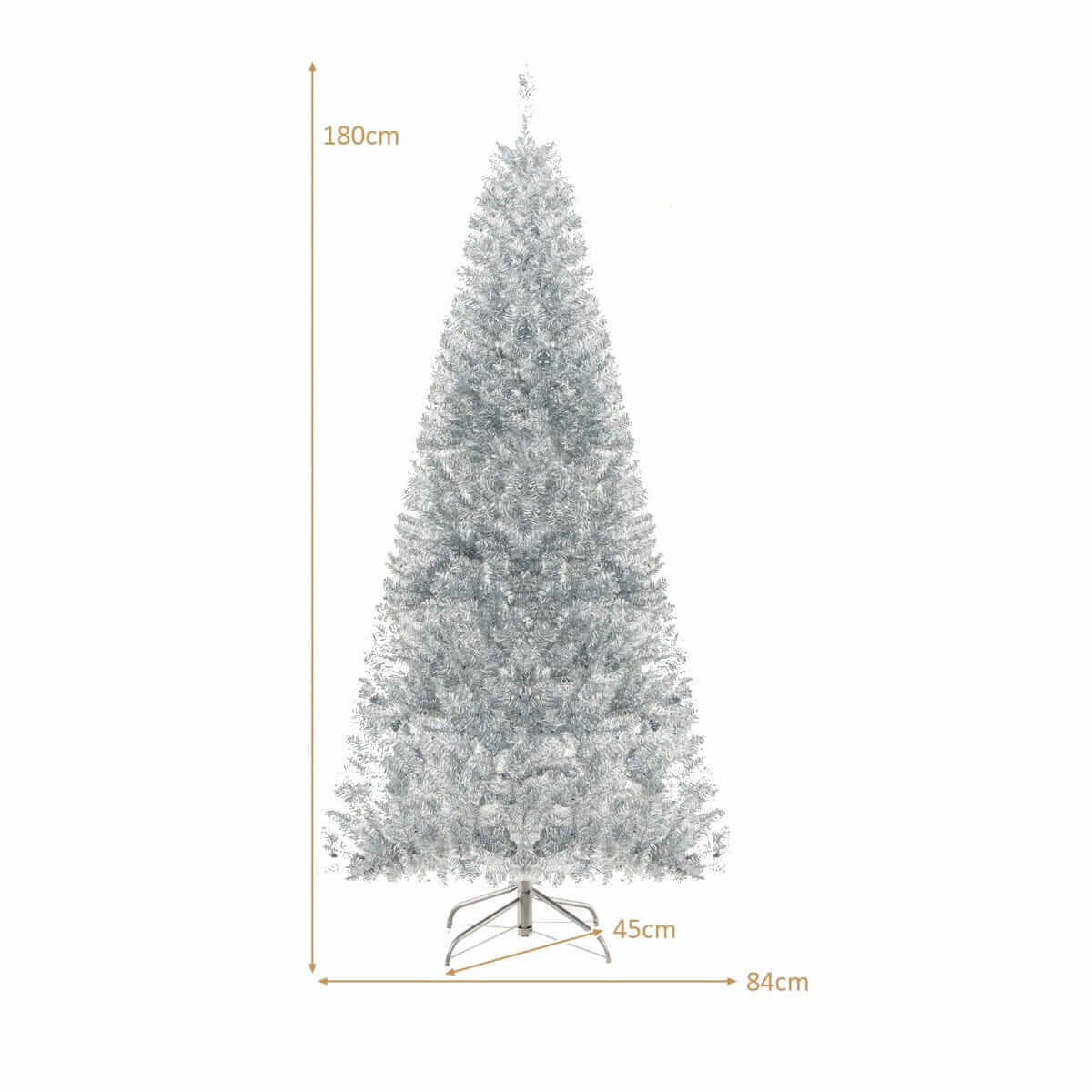 Ši 180 cm aukščio dirbtinė Kalėdų eglutė turi 790 tankių šakų, padengtų blizgančia sidabrine folija, sukuriant žavingą šventinį įvaizdį. Eglutė papuošta 300 ryškių LED lempučių, kurios sukuria šiltą atmosferą ir užtikrina energijos taupymą. Pagaminta iš ugniai atsparaus PVC, eglutė yra saugi, ilgaamžė ir lengvai surenkama dėl sulankstomos konstrukcijos.