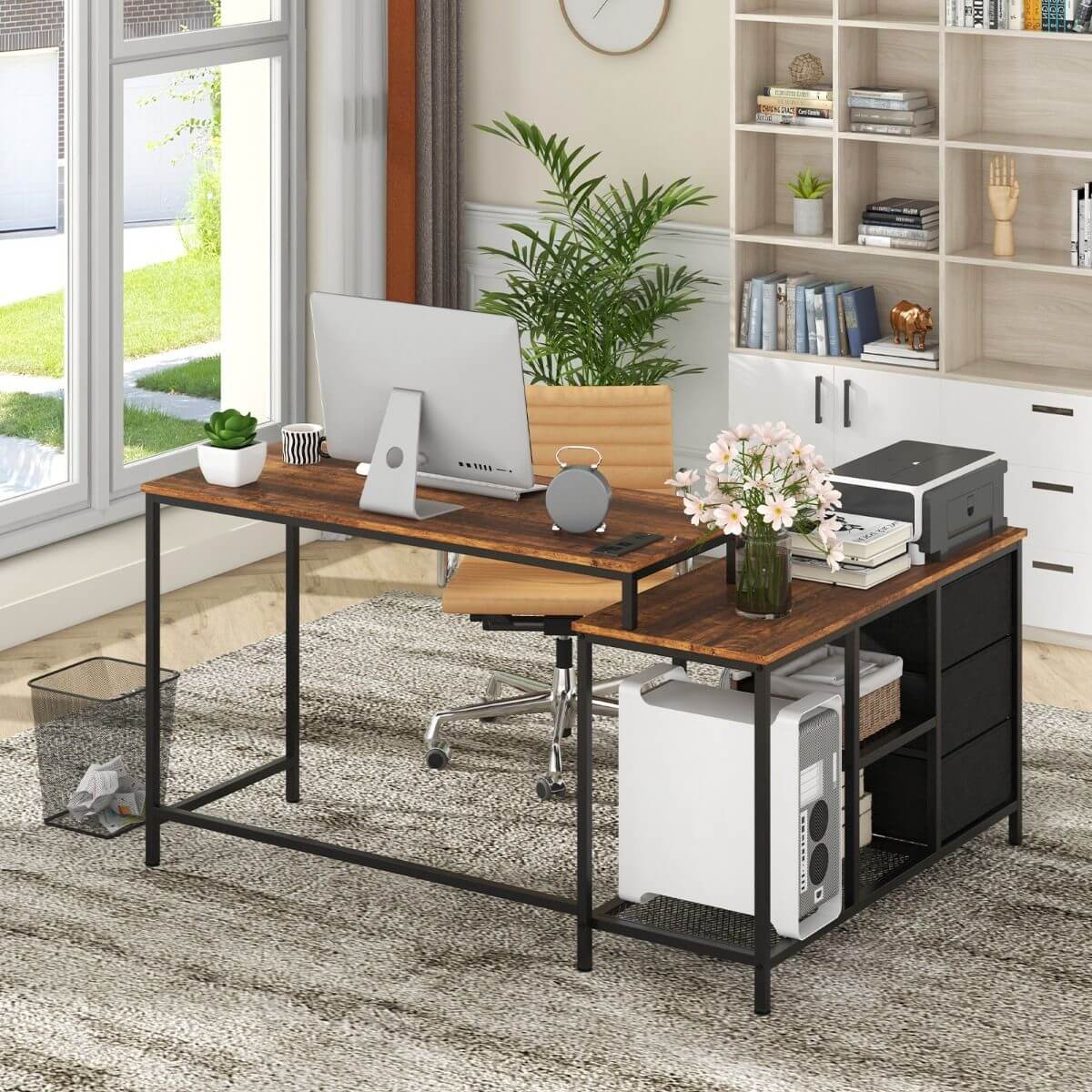 Stalo paviršius suprojektuotas taip, kad jame būtų patogu dirbti ir laikyti reikalingus daiktus. Į komplektą įeina spausdintuvo stovas, 3 dideli medžiaginiai stalčiai, 2 lentynos ir kompiuterio lentyna, užtikrinantys, kad darbo vietoje neliktų netvarkos.