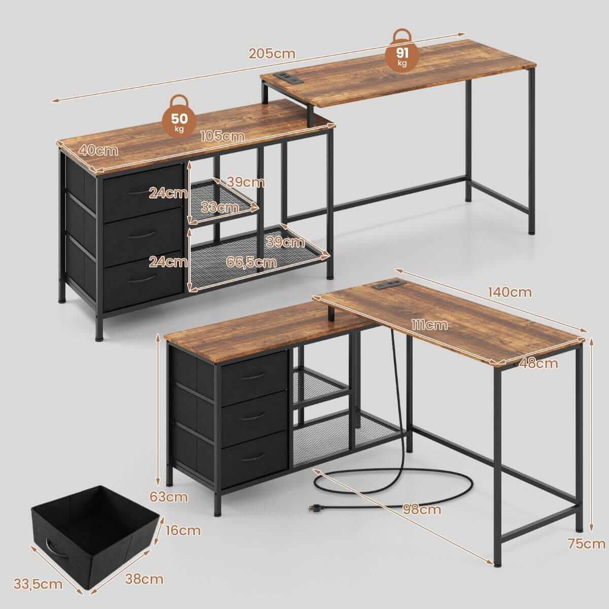 Šis kampinis „du viename“ rašomasis stalas leidžia lengvai jį pritaikyti pagal savo poreikius. Galite sujungti stalą į vieną ilgą 205 cm darbo vietą arba naudoti kaip atskirus modulius. Tai puikus sprendimas, kai reikia daugiau vietos darbui ar mokymuisi.