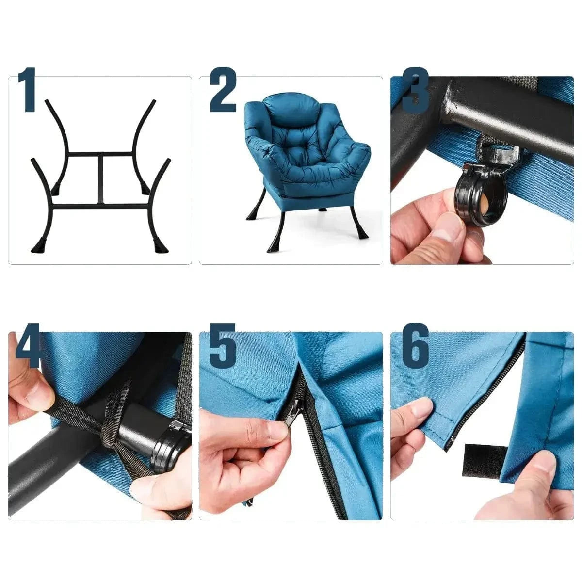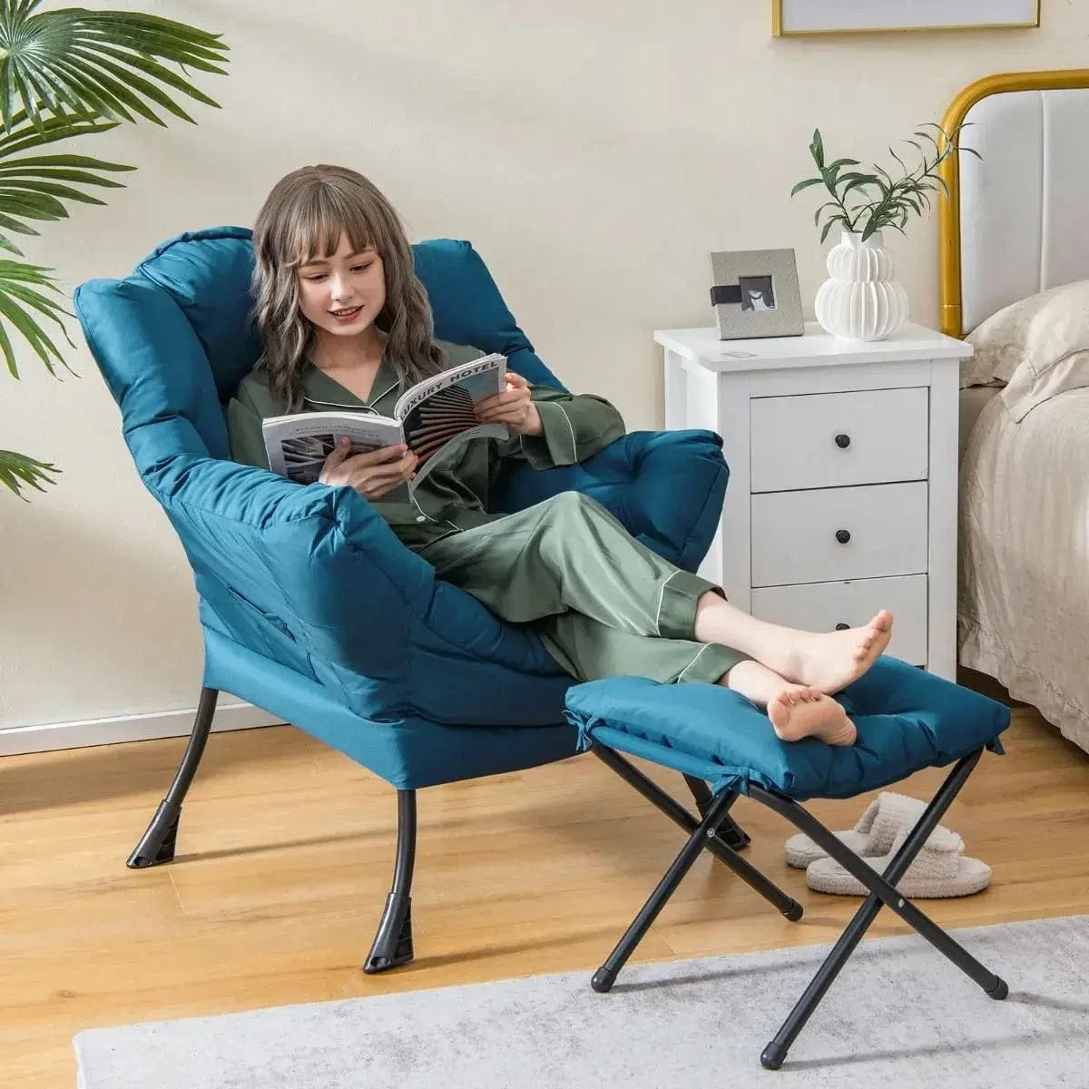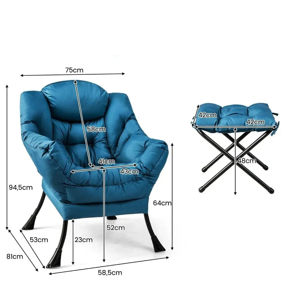 Ergonomiškas Minkštas Fotelis Su Kojų Atrama, Mėlynas
