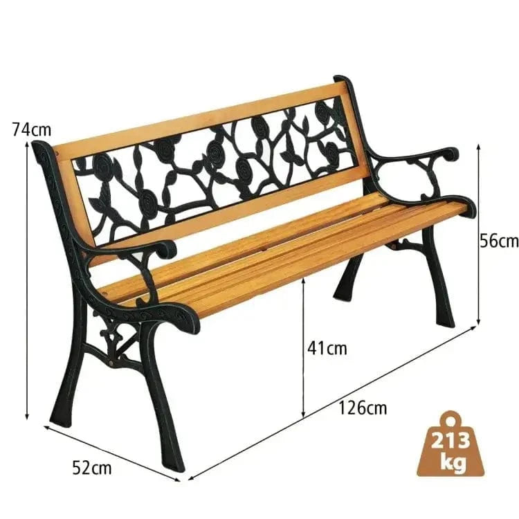 Gėlių Rašto Sodo Suoliukas Su Metaliniu Rėmu Ir Pušies Mediena 126 cm