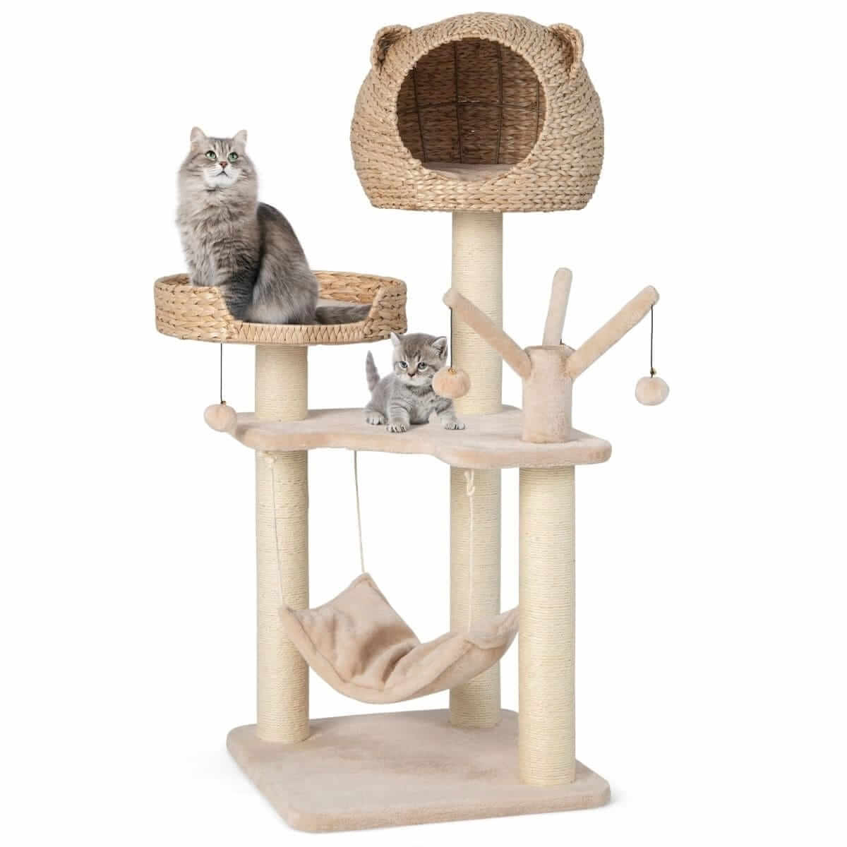 Natūralūs kačių draskyklės: Karkasas aptrauktas saugiu sizaliu, kuris patenkina draskymosi instinktą, o nagai išlieka sveiki. Sizalio stulpeliai sėkmingai apsaugo baldus nuo žalos ir išlaiko erdvę be netvarkos.