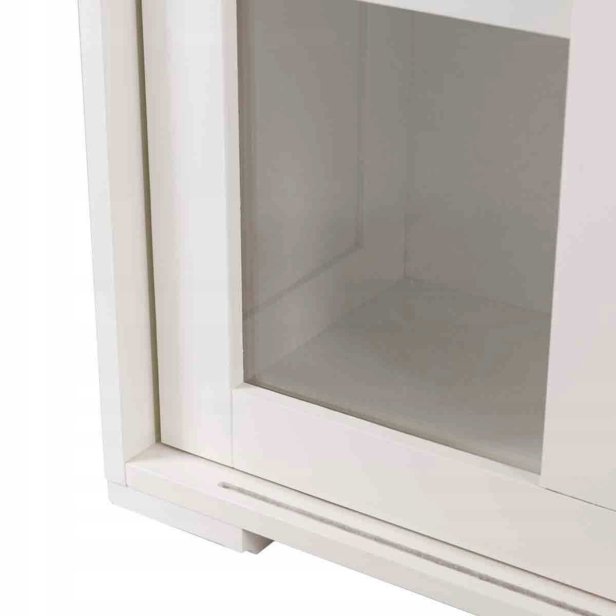 Daugybė vietos - dviejose ilgose lentynose rasite daug vietos mėgstamoms dekoracijoms ir aksesuarams eksponuoti. Grūdinto stiklo priekiai leidžia vertinti komodos turinį ir kartu apsaugo jį nuo dulkių ir nešvarumų.