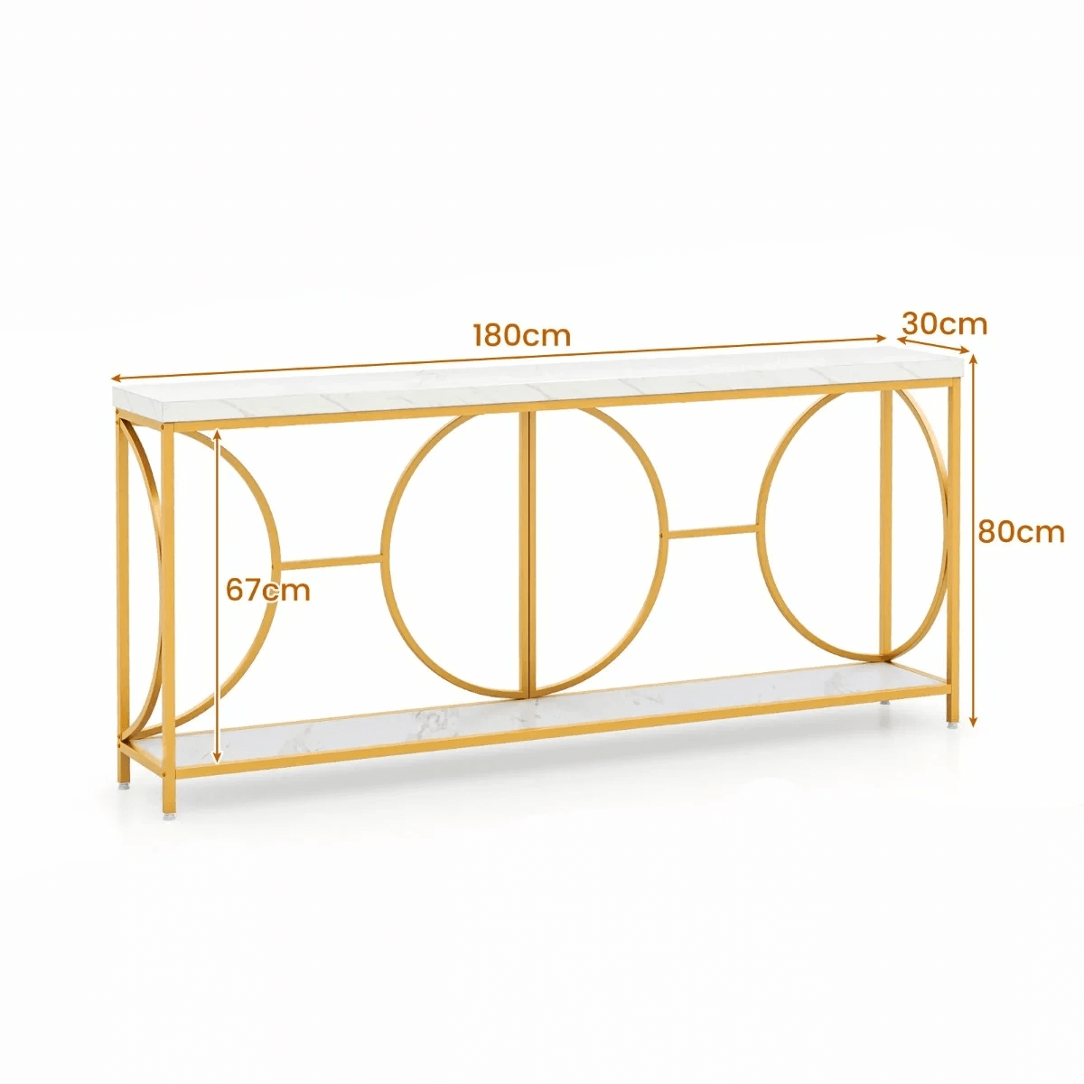 Konsolinis Staliukas Su Marmuro Efekto Stalviršiu Ir Auksiniu Rėmu 180 cm