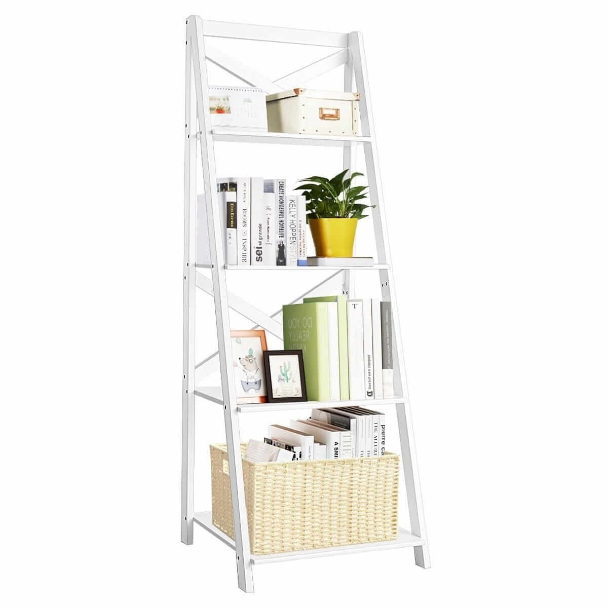 Keturių pakopų kopėčių knygų spinta