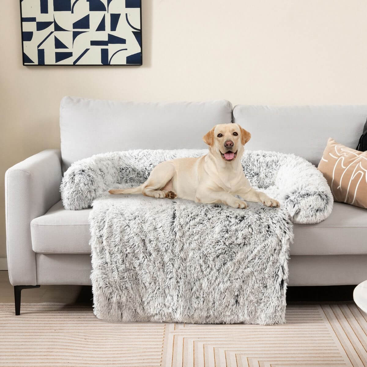 Ideali dovana jūsų keturkojui bičiuliui - jaukus ilgo plauko pliušo gultas. Jums nereikės nerimauti dėl ant sofos esančio kailio, nes jis galės gulėti ant jos tiek, kiek norės. Augintinio patogumą maksimaliai padidina storas medvilninis užpildas ir pūkuotas užvalkalas. Kilimėlis neslysta po apmušalus dėl neslidžios apačios ir rankenos, kurią galite įkišti tarp sofos pagalvių. Užtrauktuku užtraukiamą užvalkalą galima be vargo išvalyti mašina, todėl jis visada išliks be kvapo ir higieniškas.