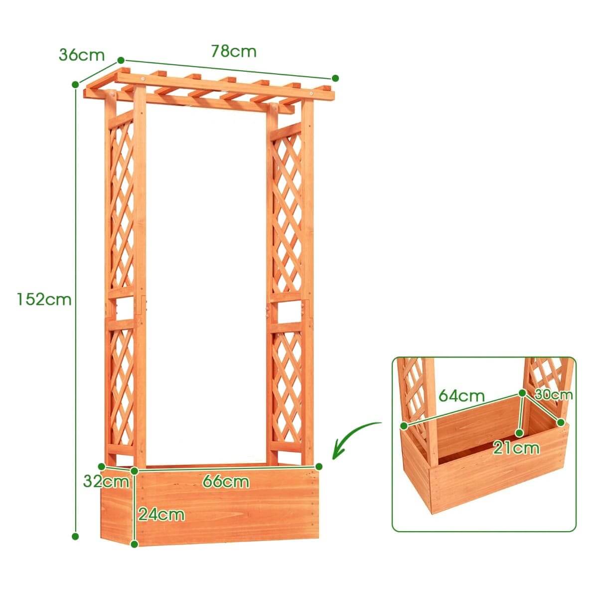Sodo dėžė su pavėsine sujungia dviejų funkcijų privalumus – ji skirta tiek augalams auginti mediniame vazone, tiek palaikyti vijoklinius augalus. Dėl dviejų šoninių grotelių augalai gali augti vertikaliai, o jūs efektyviai išnaudosite erdvę net mažame sode ar balkone.
