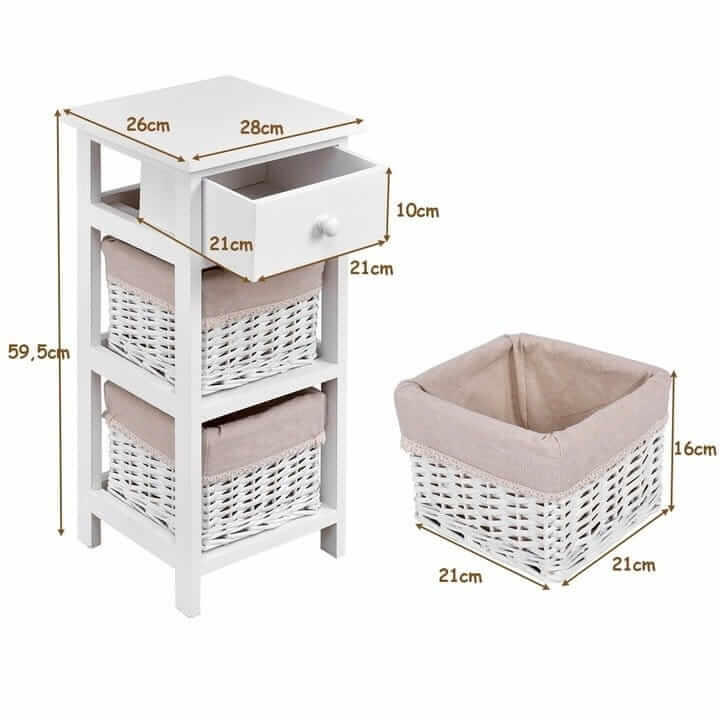 Naktinis Staliukas Su 2-iem Krepšeliais Baltos Spalvos 28 x 26 x 59,5 cm
