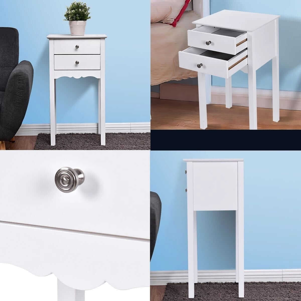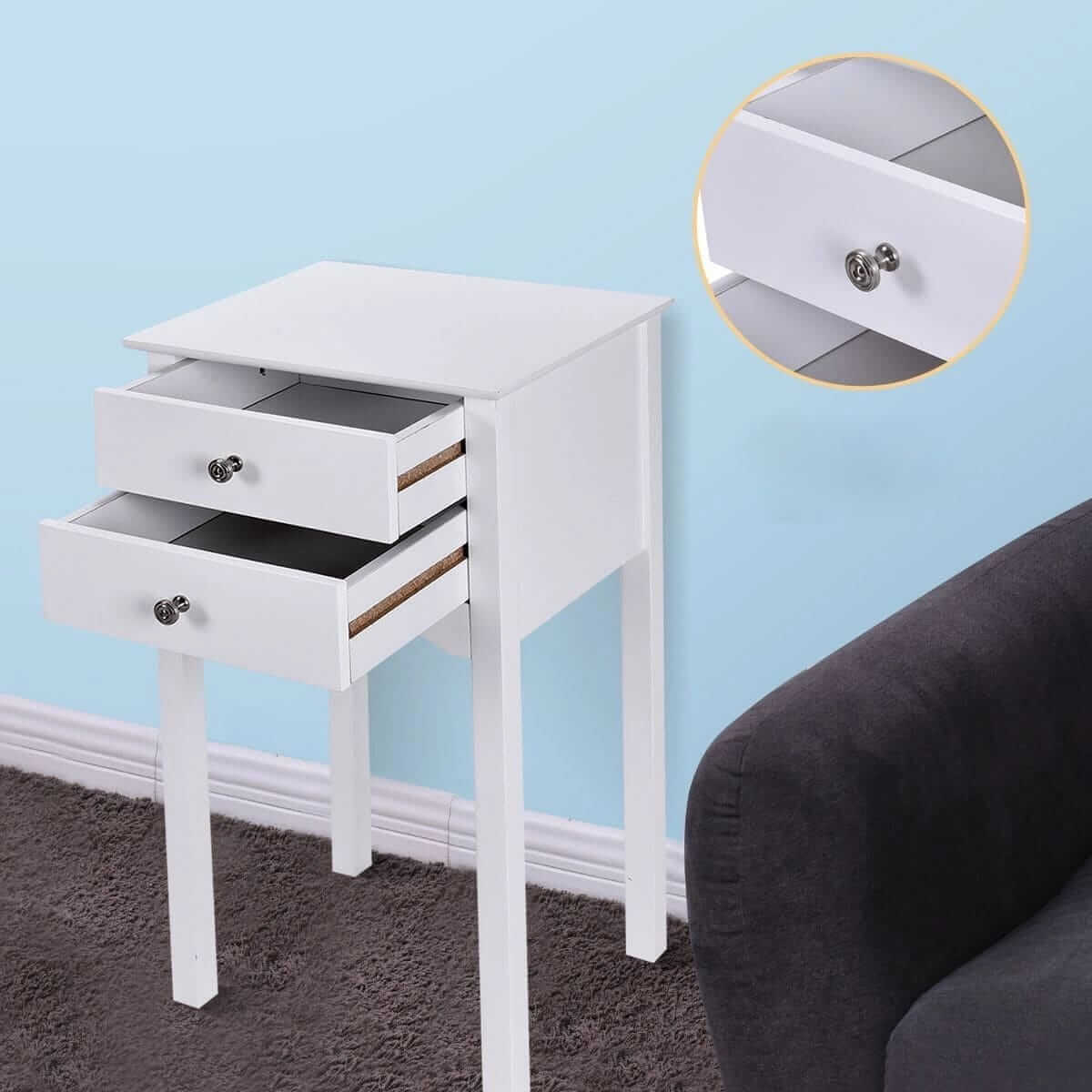 Klasikinis Baltas Naktinis Staliukas Su 2 Stalčiais 40 x 32,5 x 75 cm