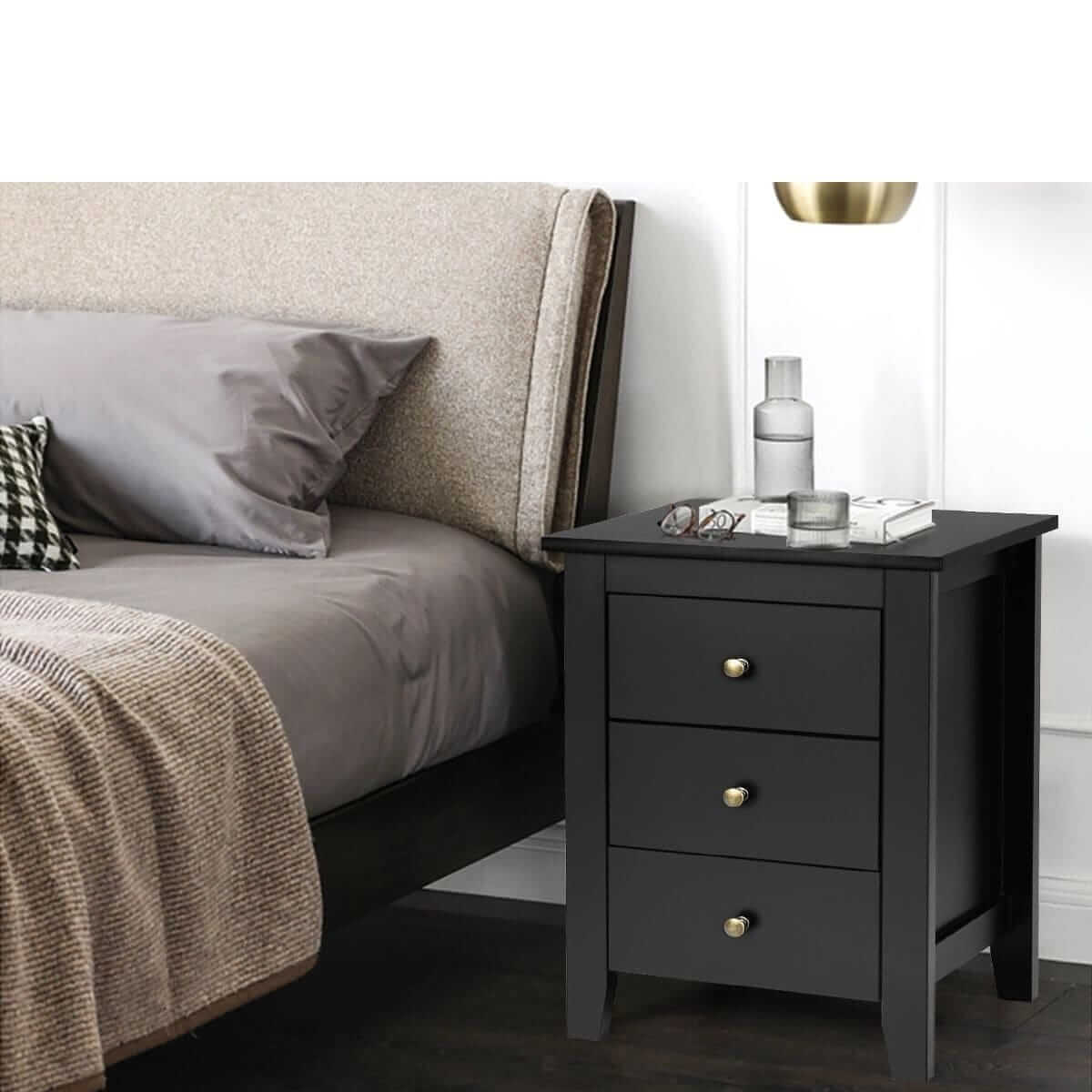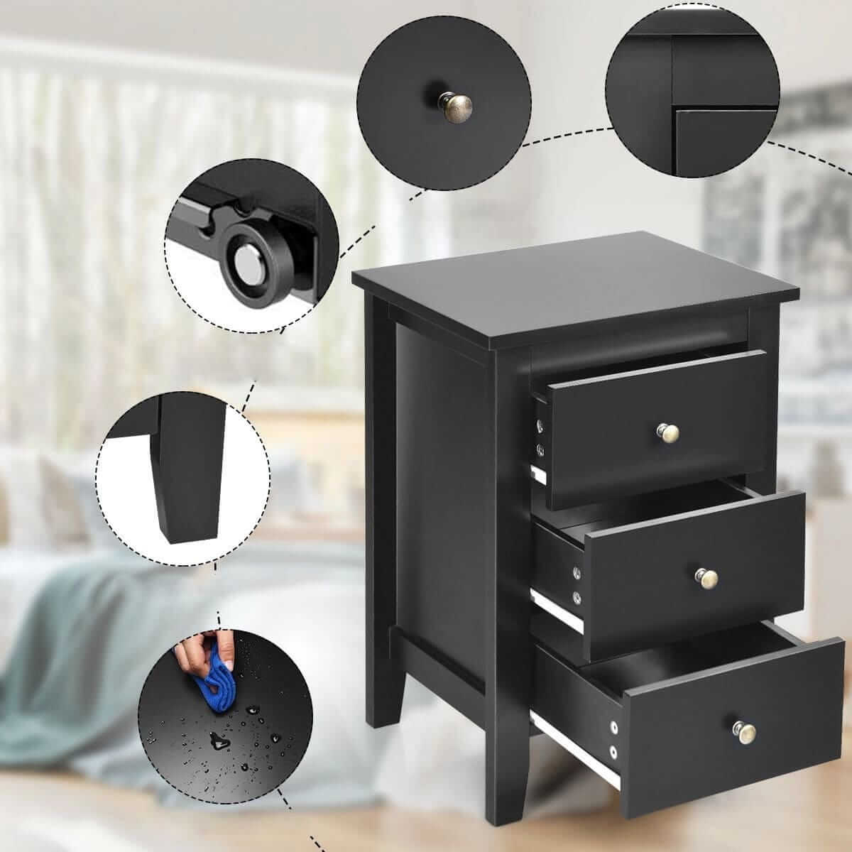 Naktinis Staliukas Juodas Su 3 Stalčiais 46 x 37 x 65 cm