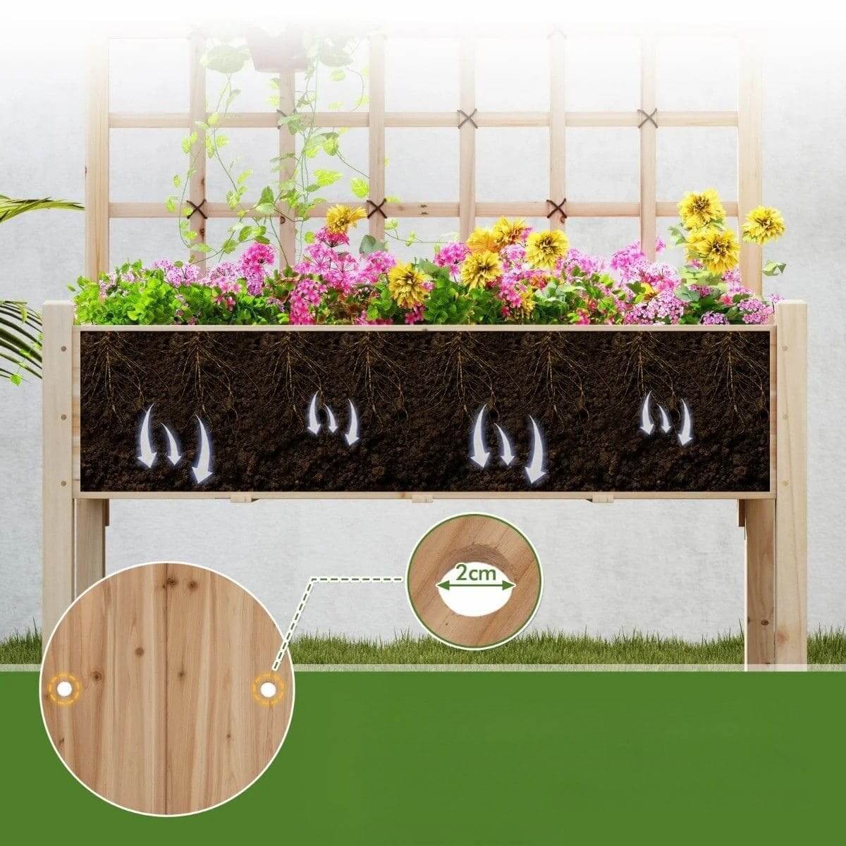 Sukurkite savo svajonių sodą su mūsų pakeliama lysve ir grotelėmis! Ši natūralios eglės medienos sodo dėžė sujungia funkcionalumą, estetiką ir patogumą viename. Ji puikiai tiks augalams auginti tiek kieme, tiek terasoje ar balkone.