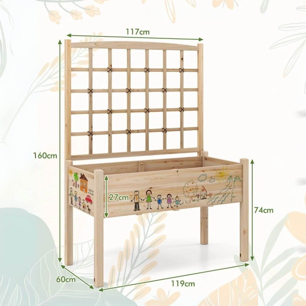 Pakeliama Lysvė, Vazonas Sodo Dėžė Su Grotelėmis Iš Eglės Medienos 119x60 cm