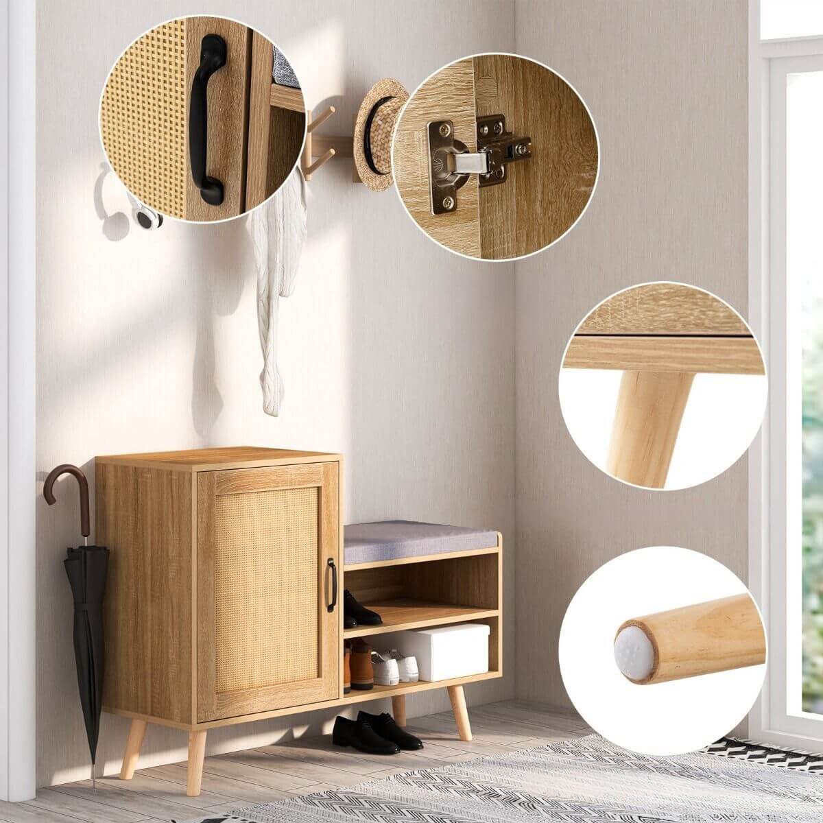 Batų spintelė yra pagaminta iš aukštos kokybės rotango ir tvirto medžio, kas užtikrina baldų patvarumą ir ilgaamžiškumą. Stabilios pušinės kojelės su neslystančiomis pagalvėlėmis suteikia stabilumą ir leidžia spintelės apkrovai siekti net iki 160 kg.